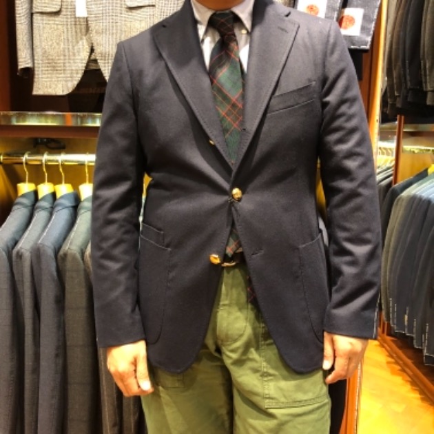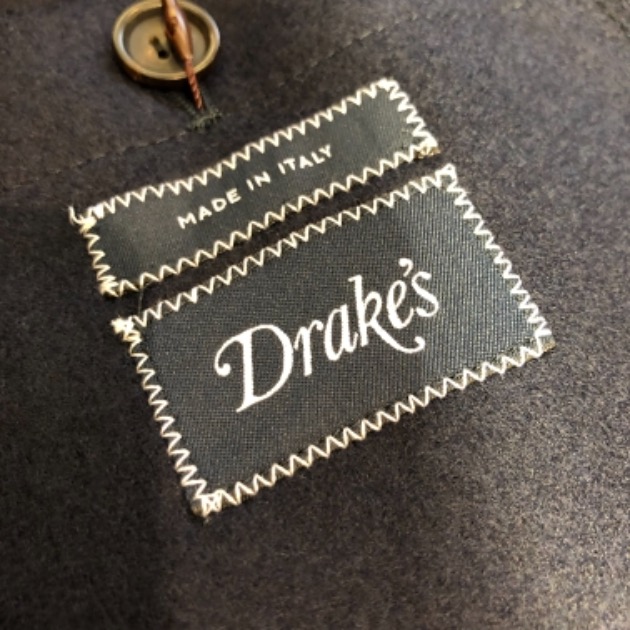 大人のDrake's takahashi.hideki 2019.11.26 高橋です。 こんにちは、今更?いやいや、大変お待たせいたしました。ホントにお待たせいたしました。Drake's ジャケットです。ウールメルトン?フランネルブレザーですね。Drake's価格:¥158,000+税商品番号:21-16-1615-175意外にも似合うと?自画自讃?メタルボタンもいい感じです。裏無しの一枚仕立て。良いですね。