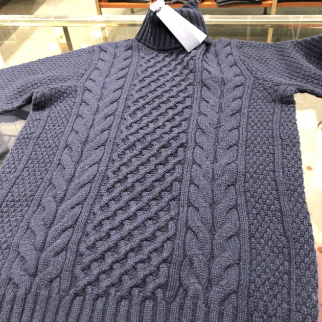 大人のケーブル? takahashi.hideki 2019.12.12 高橋です。こんにちは、いつもブログ観てくださりありがとうございます。引き続きフォロー、お気に入り登録お願い致します。DRUMOHR ですね。毎年好評なコレケーブル タートル、フロントだけケーブルで、袖と背中とは、大仏の頭みたいな、なんで言うんですかね?精進いたします。見てたら欲しくなりました。今日はこの辺で引き続きご贔屓に、