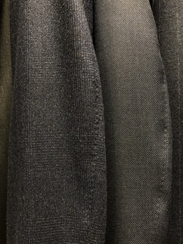 バーズアイ風なピンヘッド?の生地感で、ほんのりグレイッシュなスモーキーなネイビーの色合いが絶妙です。