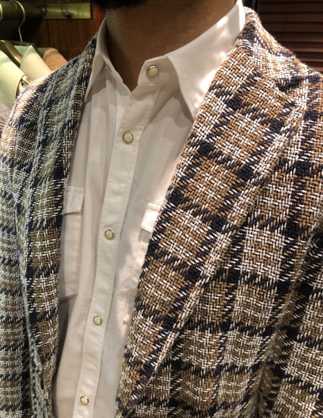 今シーズン、ウエスタンというのは、注目のテイストのようですが、元々アメカジ好きの自分にとっては、ウエスタンシャツは好きなテイスト。昨年は、高円寺でグレーのダンガリー地のラングラーのウエスタンシャツを入手して売場でも着たりしておりました。