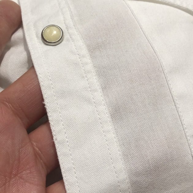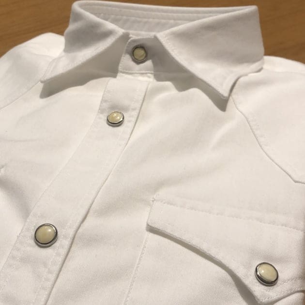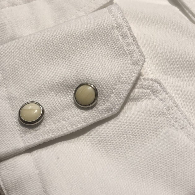良くも悪くも男臭いアイテムであるウエスタンシャツですが、白でソフトな生地になることでクリーンな印象になり、着こなしに取り入れやすいのかなと思います。
