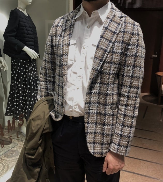 古着だとエリが大きかったり、長かったり、生地がチープだったりする物も多くて、抵抗持たれる方も多いかもしれませんが、エリもコンパクトなので、ぜひ取り入れていただきたいですね。