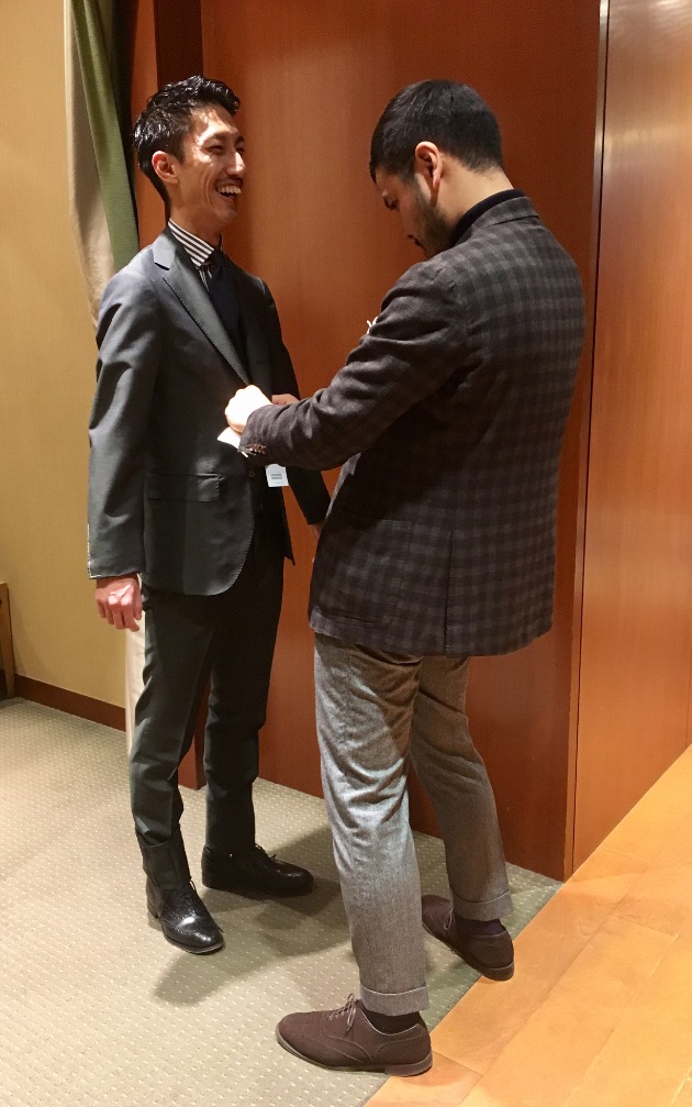 入荷してさっそく狙っていたのか、スタッフ七五三掛は購入しておりました。先輩スタッフ鈴木に採寸してもらい何だか嬉しそうな。