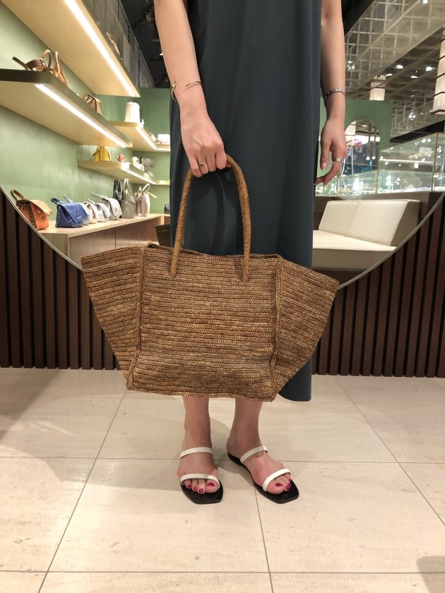 シンプルなワンピースは、少し大きめなトートバッグとも相性がよいですね。