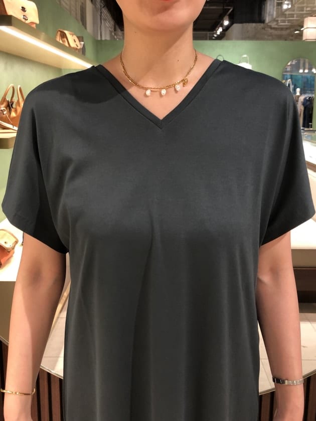 デコルテもキレイに見えるカットは、アクセサリーや小物使いで色々なアレンジをお楽しみ下さい。