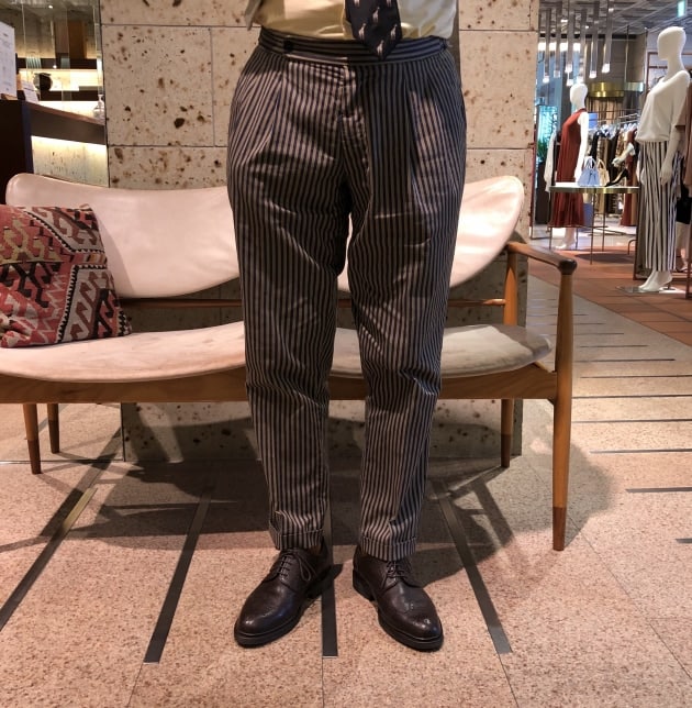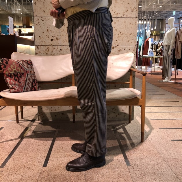 そんな本日、休業中に仕上がってきていたものの修理代が払えずに持ち帰ることができなかった<BERWICH>のストライプパンツをようやく下ろすことができました。