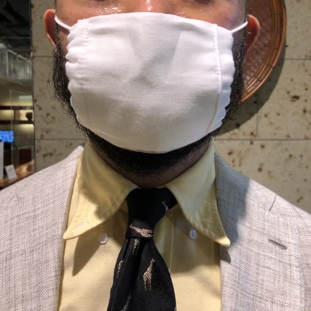 ロンドンのマーケットで3ポンド位で買ったチーフ以外は、全て今期モノと継続品を使用した洋服屋の鑑のような合わせに、アベノマスク。我ながら新たな組合せです。
