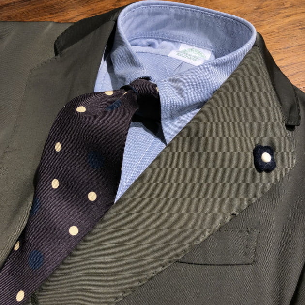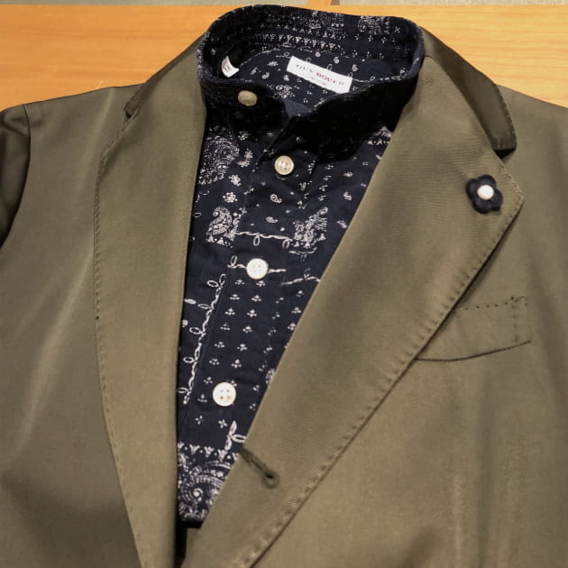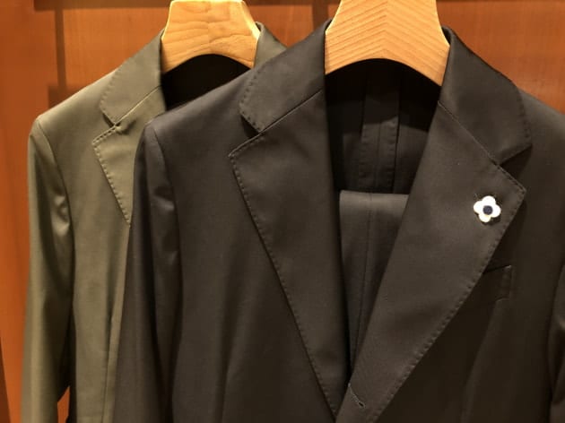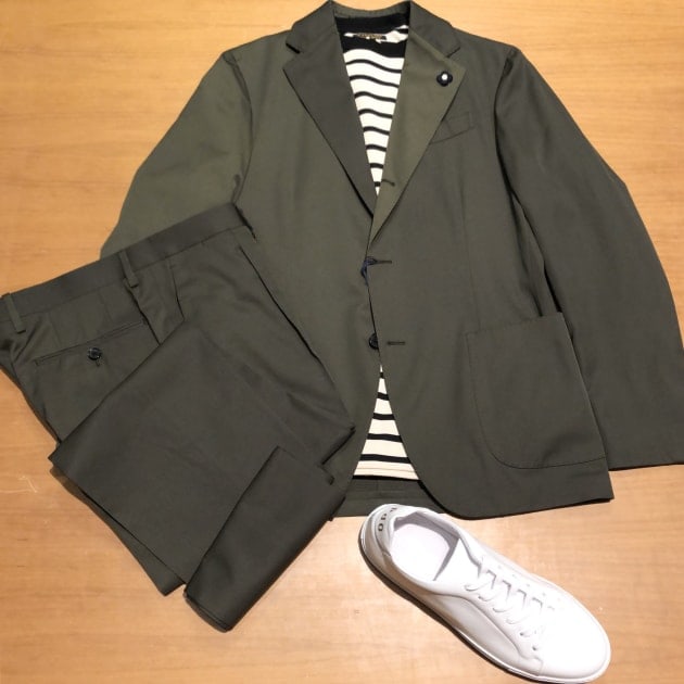 LARDINIが得意とする軽い仕立てがウリのEASY WEARシリーズのスーツ。ジャケットの腰ポケットは、パッチポケット仕様なので、セットアップ感覚で着こなせて、カジュアルダウンもしやすいモデルです。お好みでセパレートで着るのもアリかと。