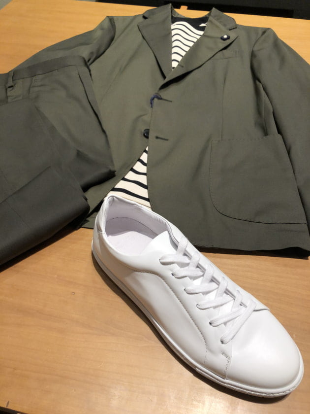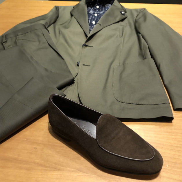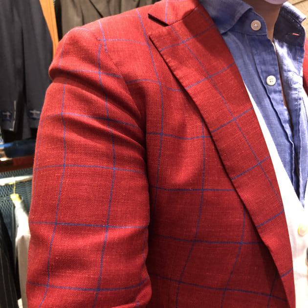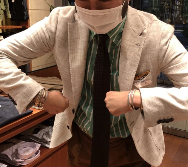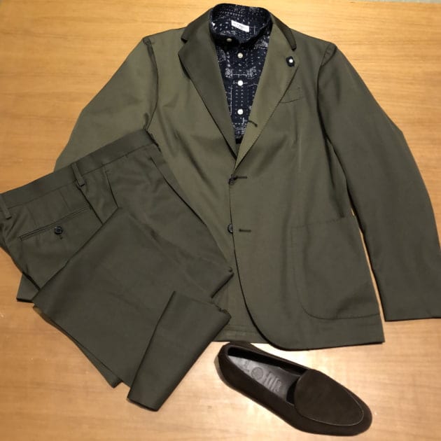生地感や色目的に堅いお仕事で着るスーツではないので、オシャレで着こなしたいスーツですね。