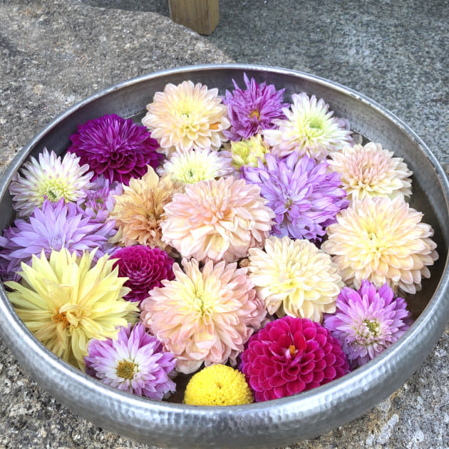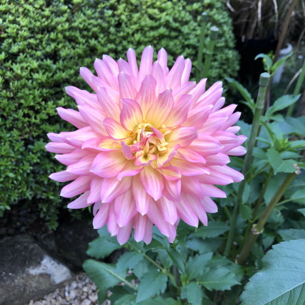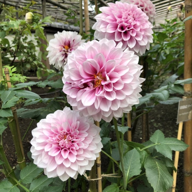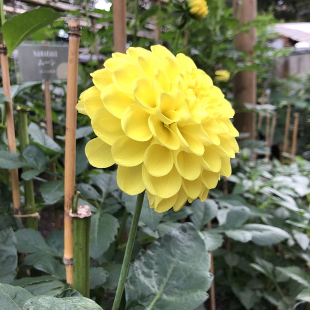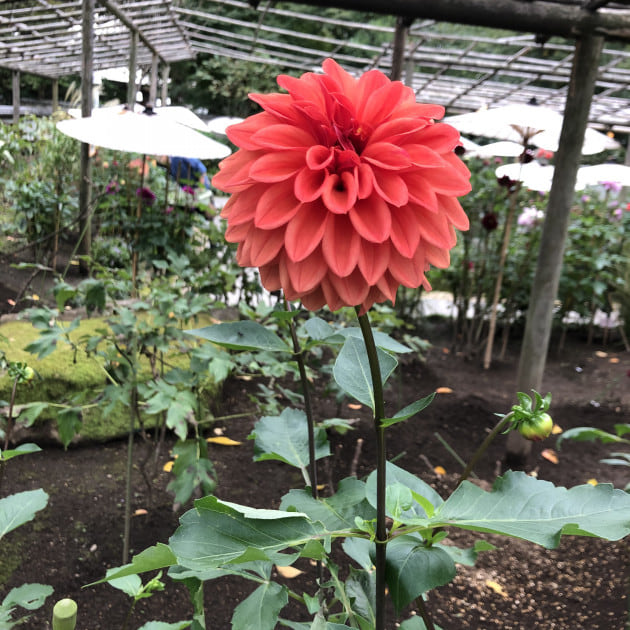 自然な花もきれいですが、きちんと手入れをされた花はきれいです。むしろ、ダリアをこんなまん丸に育てるのは自然の力だけでは無理そう。管理しているテキパキと働くお兄さんはもう尊敬の念です。