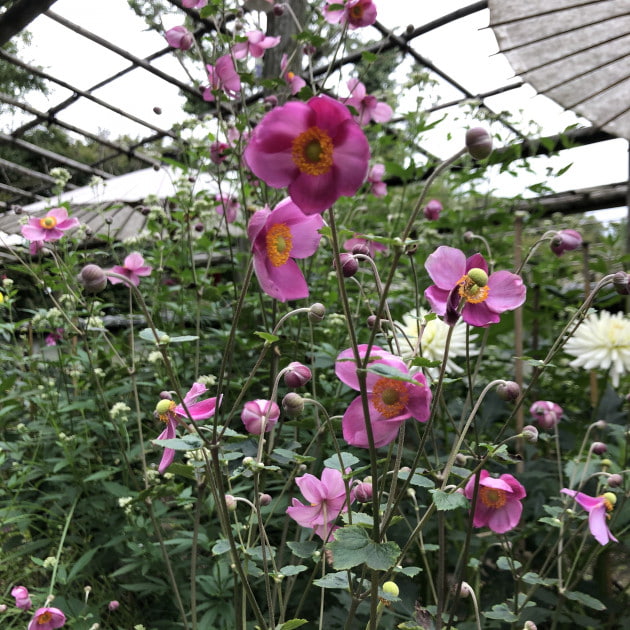 居ました!本日10月15日の誕生花、秋明菊(シュウメイギク)です。ダリア展なのに目当ては秋明菊でした