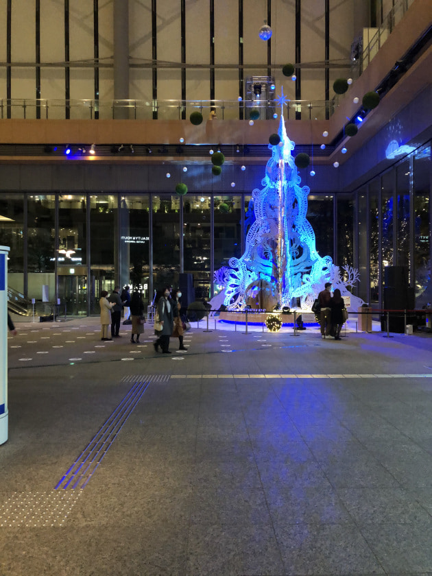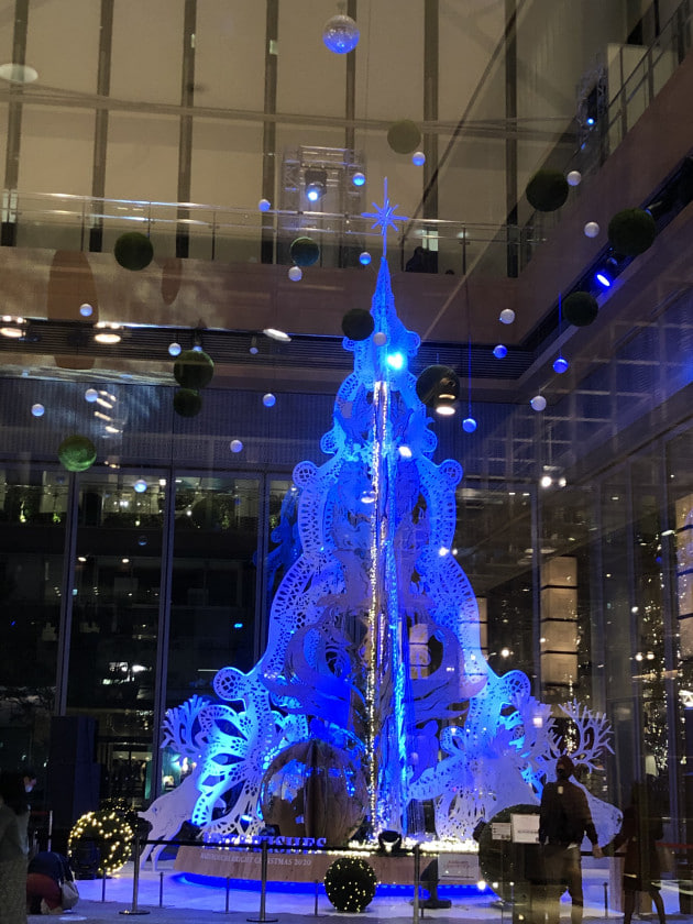 当店の正面、丸ビルの1Fロビーにあるクリスマスツリーです。