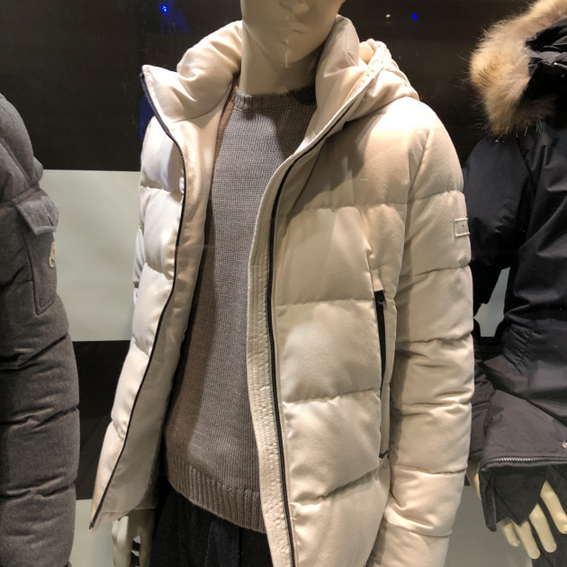 MONCLERの定番モデルのモンジュネーブル。定番のナイロン生地モデル、MAYA(マヤ)のウールモデルです。