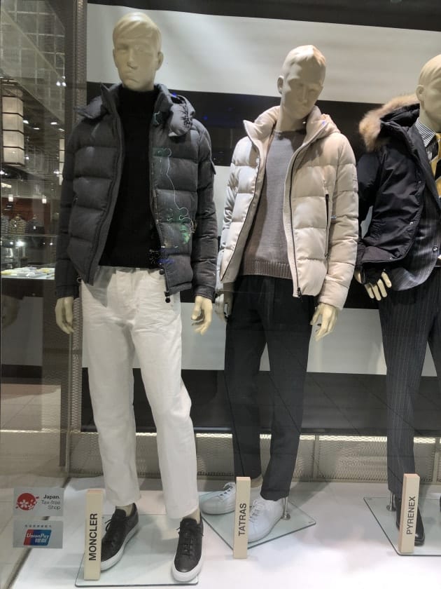 ダウンジャケットの打ち出しのディスプレイです。皆が着ているとなかなか圧巻ですね。