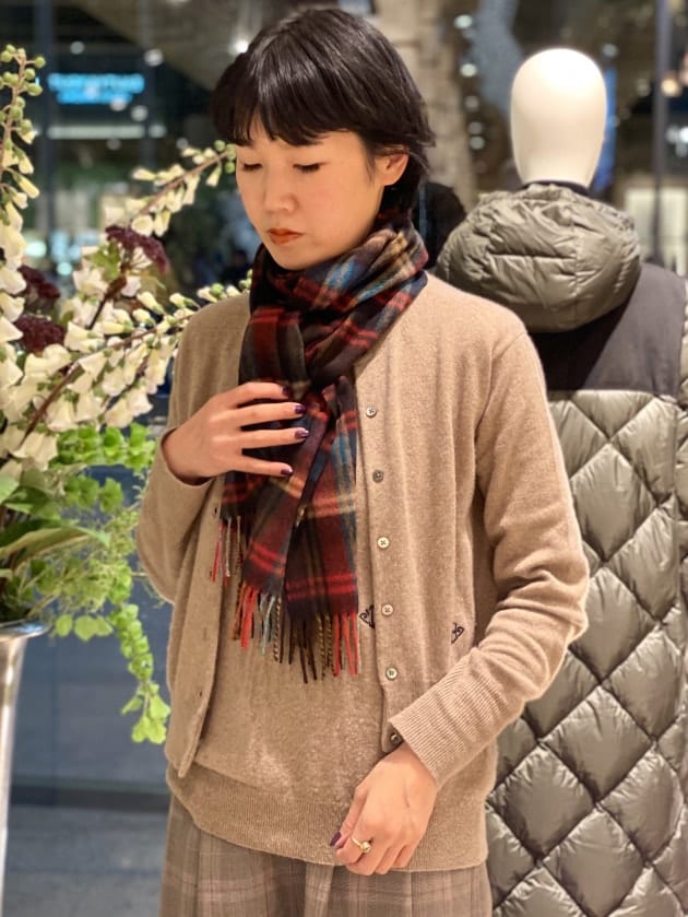 少し肌寒い日のお供に、シンプルなコーディネートのアクセントに活躍するタータンチェックのストール。