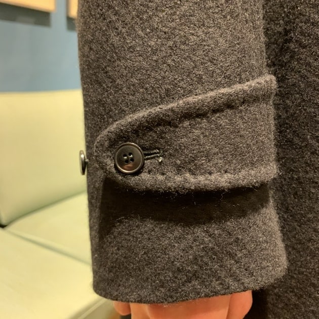 画像と言葉で表現するのが難しいのですが、袖を通して見て頂くと非常に雰囲気の良いコートです。生地のドレープ感や、落ち感と言えば良いのでしょうか、程良くオーバーサイズでゆったりしたシルエットが大人っぽいです。流石は<Stile Latino>。絶妙なさじ加減でございます。