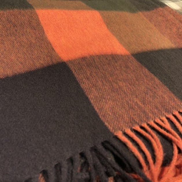 暗めのブラウン系やブラックを使ったコーディネートに、オレンジをマフラーでさして頂きたいです。