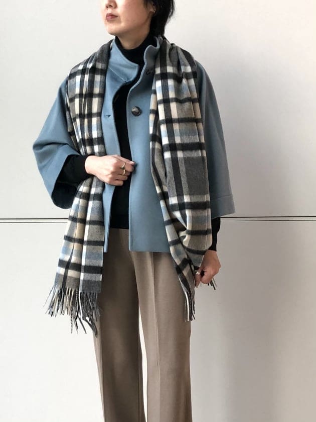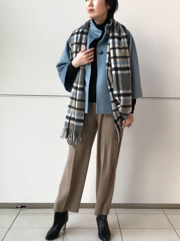 ブルーとグレージュはとても相性の良い組み合わせですね。覚えておくとコーディネートしやすいと思います。