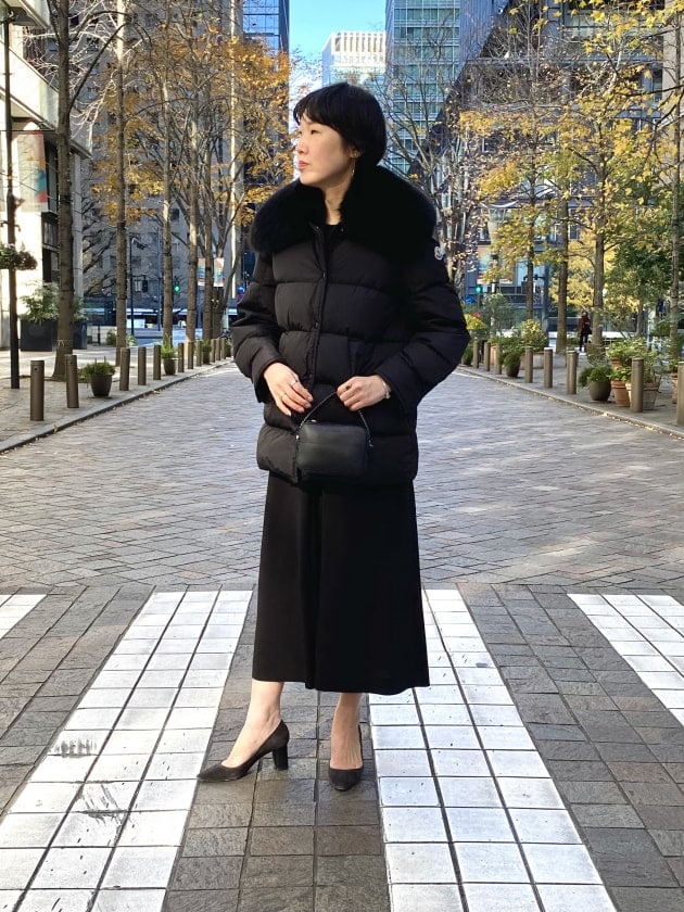 フォーマルな装いにもマッチしますね!シンプルなデザインは長くご愛用いただけますし、コーディネートに合わせてフォックスファーは取り外してお召しいただけます