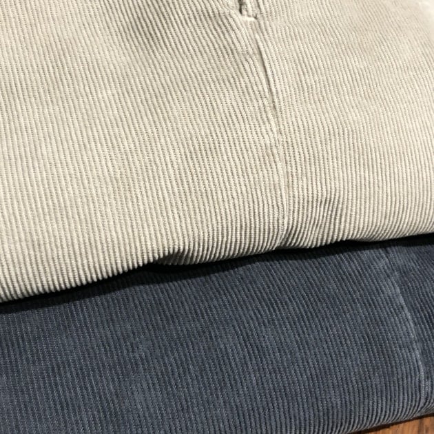 大きいサイズしか残っておりませんが…ライトグレーも良いですね。濃淡と生地感のメリハリをつけてモノトーンコーディネートで。