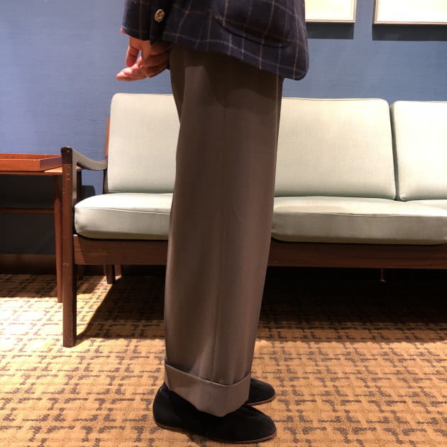 こちらのパンツですが、レディース仕入れなのです。普段イタリアブランドのパンツは42が多いというマッチーで、こちらのフランスブランドはサイズ38を着用。