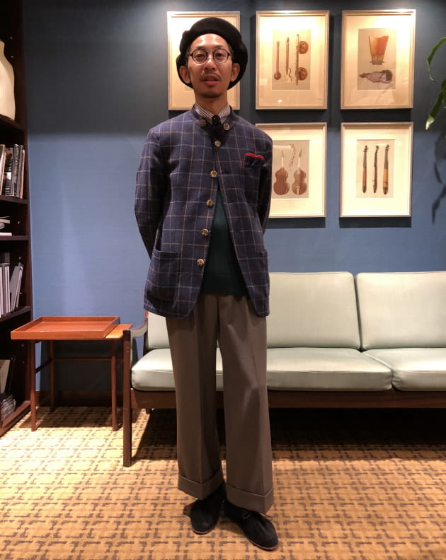 初めて見る方も多いであろう、こちらのジャケット。フランスのブランド、<ARTUMES & Co.>の逸品。チロルジャケットモチーフというのが新鮮に感じる別注モデルです。