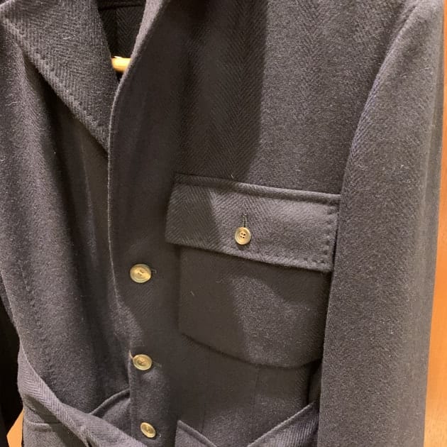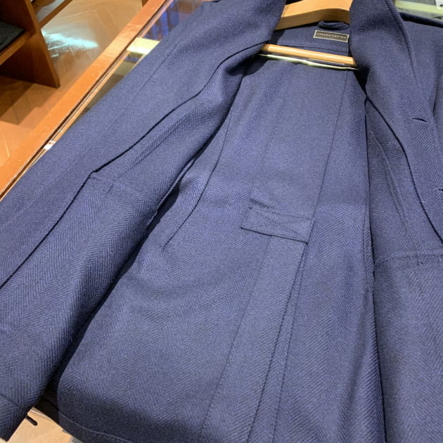 生地は濃淡のあるネイビーのヘリンボーン。ウール100%生地です。カラーはこちらのネイビーのみの展開。