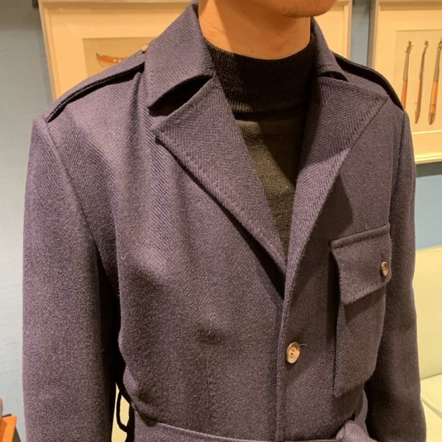 襟のバランスも良いですよね。肩にはエポーレットが付きます。あまりボリューム感がなく、そこまでシルエットには影響しない控え目な感じですね。