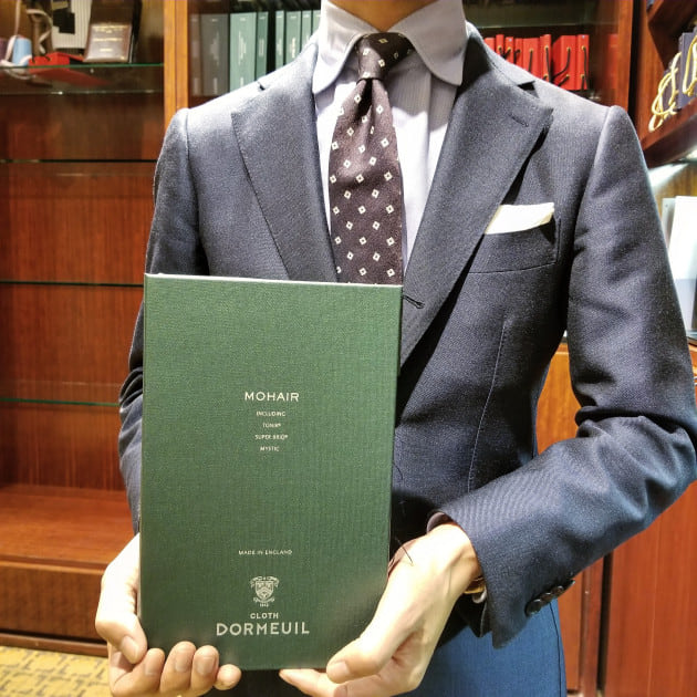 〈DORMEUIL〉の『MOHAIR』バンチを持っていますが〈WILLIAM HALSTEAD〉の生地で仕立ててます。