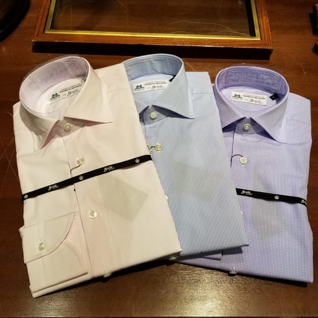 最近、気になっている〈Brilla per il gusto〉オリジナルドレスシャツです。今季から襟や前立て、カフスの仕様を変更し、よりオリジナルスーツに合ったデザインとなっており、モヘアスーツとも相性抜群という事で紹介させて頂きました。肌触りも良く、ベーシックな柄もオススメポイントです。個人的にシャツに関しては肌触りを一番重視していて、その点この〈THOMAS MASON〉の生地を使用したオリジナルドレスシャツは合致します。コストパフォーマンスも申し分なく自分も2枚は試してみようと考えております。オススメです。