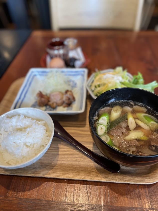 肉か魚のメインから選べる芋煮ランチ。今回は肉をチョイスしました。山形の名物芋煮も初めてです