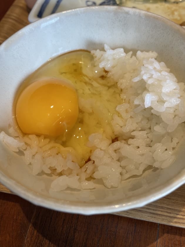 本来卵かけご飯(TKG)は、卵と醤油を混ぜてからご飯にかけるタイプなのですが、写真映えするかな?と思い直に行きました