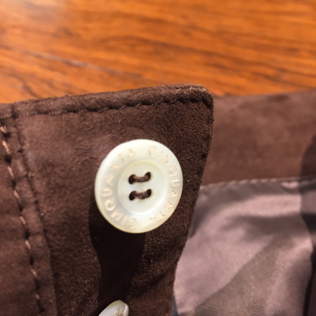 ボタンはシェルボタンで高級感を感じさせてくれます。