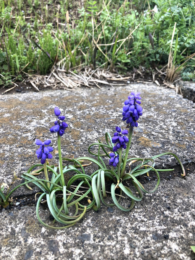 可愛いムスカリは本当に小さくて可憐な花を咲かせます。1年前にも同じ様な事を言っていますが、ぶどうの房の様な、小さなヒヤシンスの様な愛らしい花です。去年と同じ場所にちょこんと咲いていました‥