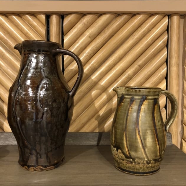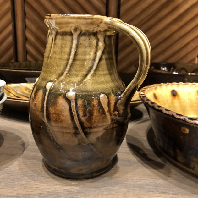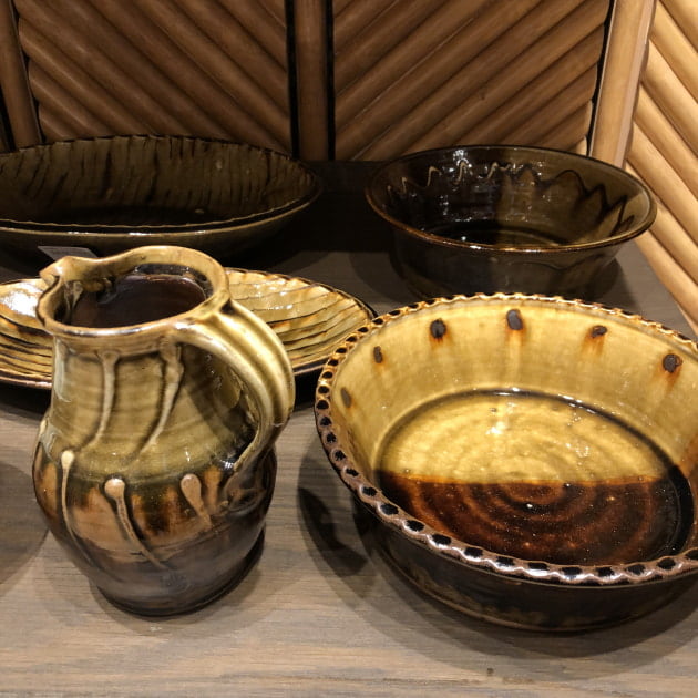 スリップウェアを得意とする柴田さんの作品は、重厚感のある作風
