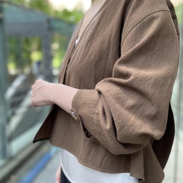 お次はジャケットライクなウール×リネンのカーディガン↓