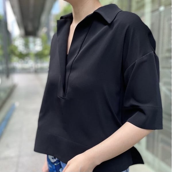 ROOM NO.8 BLACK / ダブルサテン スキッパー ブラウス