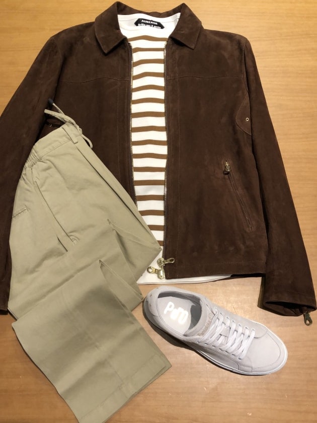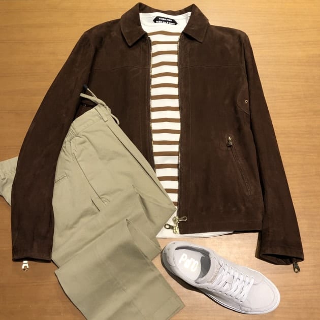 ライダーズと名付けられていますが、ハードな印象にはならないモデルなので、シンプルなジップアップブルゾンとして取り入れていただきやすいと思います。