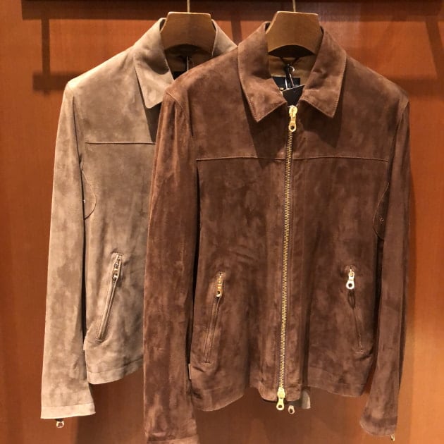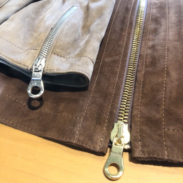 グレイッシュなダークベージュ的なストーンと、ダークブラウンの2色のシングルライダースジャケット。