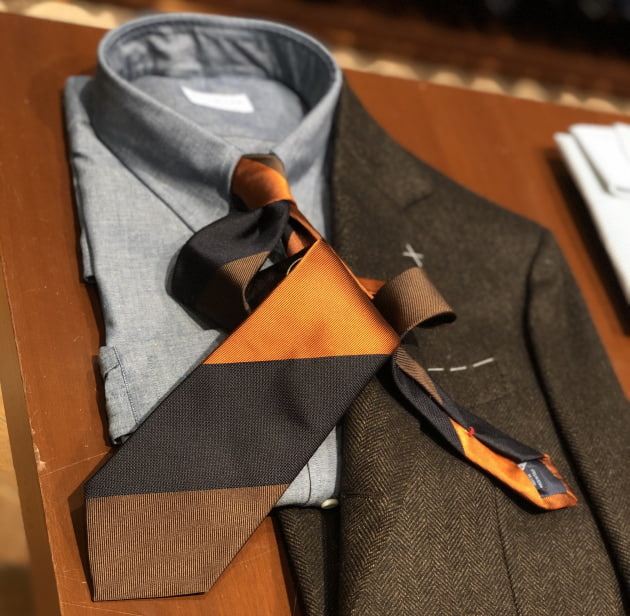 普通にネイビーのジャケット、ブルーのシャツと合わせても良しです。