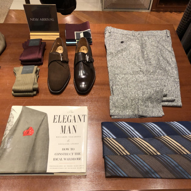 無地のウールパンツでも間違いないですが、先日紹介したホームスパンのパンツを合わせると、季節感、素材感を楽しめます。