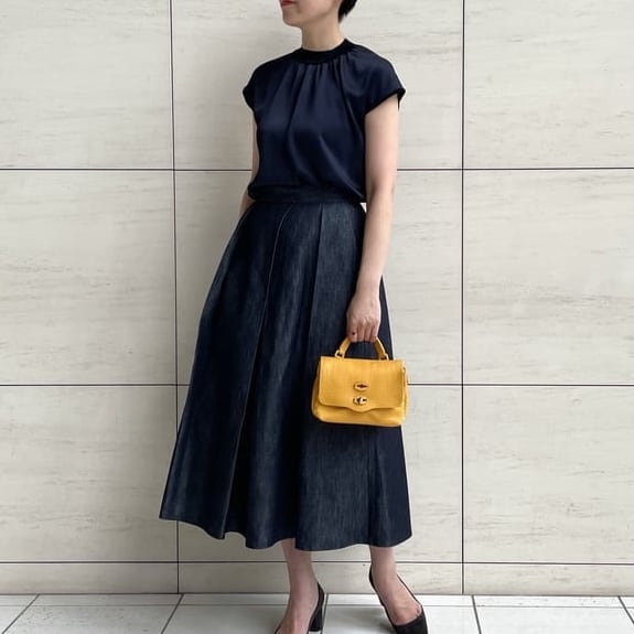 コーディネートのポイントになるイエローはアクセサリ感覚でお待ちいただけます。見た目よりも収納に優れ、ショルダーバッグとしても2wayでご利用いただけます。