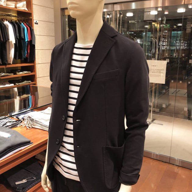 合わせたインナーは先日よりSALE対象品となりました<Letroyes>別注のボーダー柄ボートネックニット。