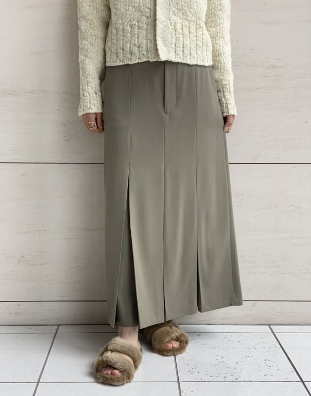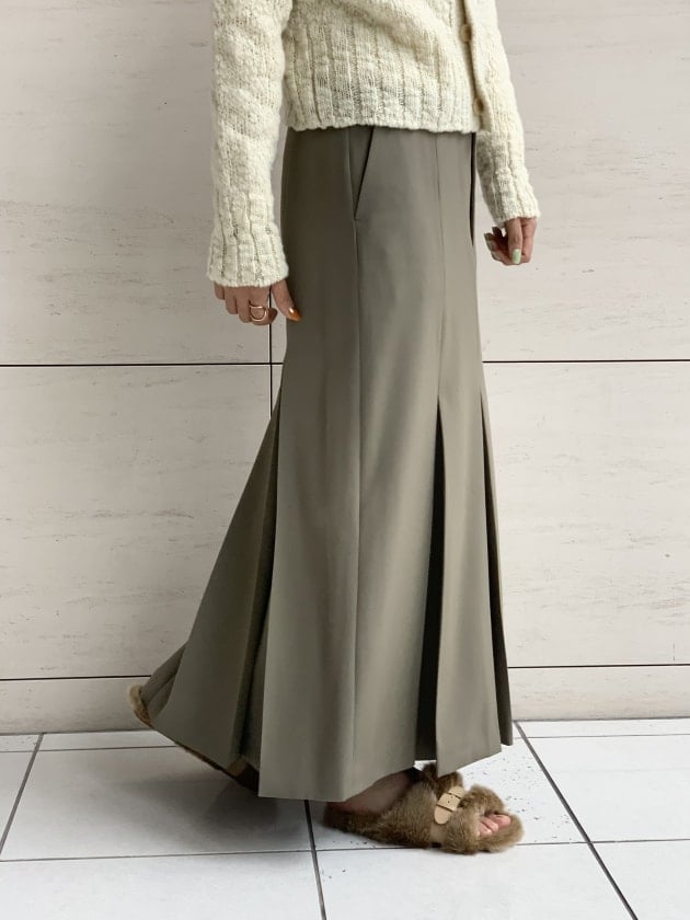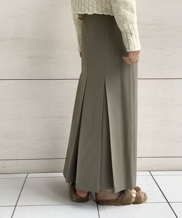 低めにデザインされたプリーツなので、マーメイドスカートのような女性らしいシルエットを動く度に楽しめます。
