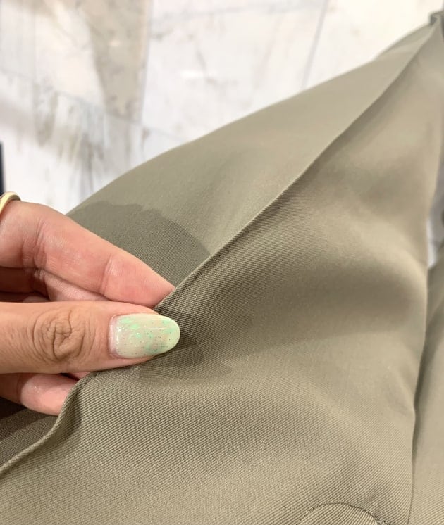 毛羽立ちのないハリとコシのあるウールギャバジン素材は、皺になりにくく滑らかな肌触り。