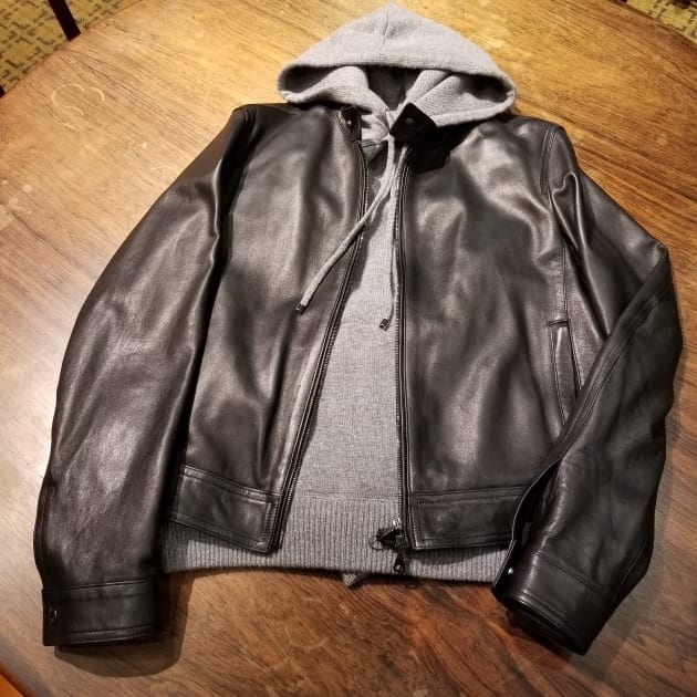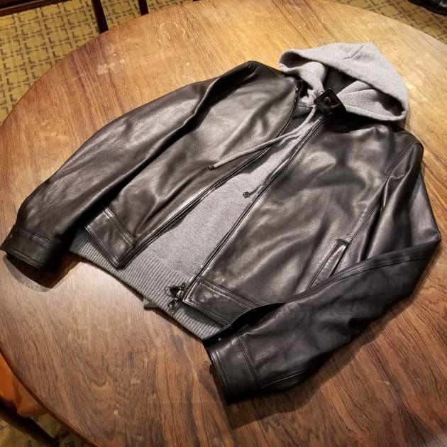 今回、これからの時期に色々な着まわしができるニットパーカーをご紹介させて頂きましたが、クロージングで展開しているレザーやブルゾンと非常に相性が良く、大人のカジュアル着として重宝するアイテムです。