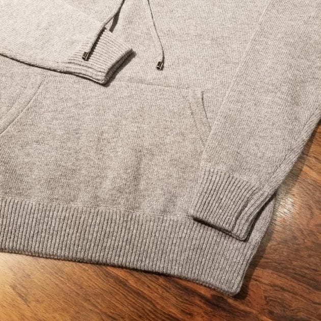 パーカーと言えばスウェット素材ですが、コチラはニット、すなわちウール素材なので、上品さや大人っぽさがありますね。