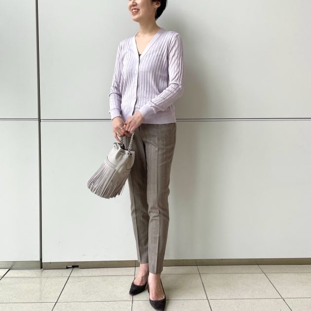 ベージュとモーブのグラデーションカラーで繋いだコーディネートもご覧下さい↓
