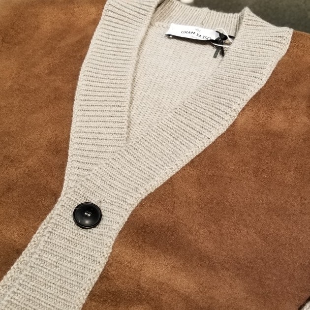 今回は〈GRAN SASSO〉アルカンターラコンビカーディガンのご紹介です。