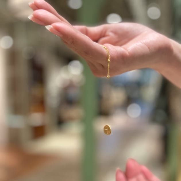 同じスタッドチェーンのブレスレットにもご注目ください。ブレスレットのコインはゼウス/ヴァーズ、全知全能の神の力で幸運が訪れそうですね‥